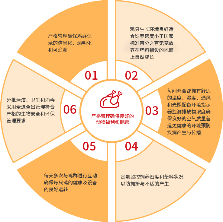 专门配制的营养素食平衡了氨基酸与益生菌,确保鸡只健康和鲜嫩多汁的肉质